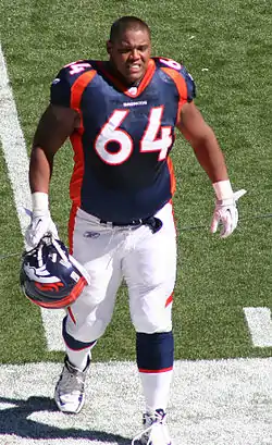 Claimed off of waivers on May 14 by the Broncos. Completed the remainder of the offseason, training camp, and pre season making the active roster. Saw action and started the first four games at Left Guard. Was declared Inactive for five weeks (games 5, 10, 11, 12, 13). Saw action on Special Teams only in weeks 6, 7, and 8. Was waived on December 12. Signed to the practice squad on December 14 where he competed until December 22. He was signed on the 22nd to active roster.