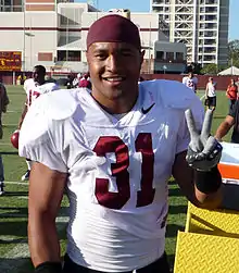 ![]() Havili making the USC "V" for victory sign after a 2008 fall practice. | |||||||||||||