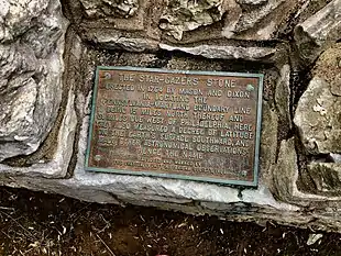 Star Gazers' Stone located on Star Gazers' Farm near Embreeville, Pennsylvania, USA, marks the site of a temporary observatory established in January 1764 by Charles Mason and Jeremiah Dixon which they used in their survey of the Mason-Dixon line. The stone was placed by Mason and Dixon about 700 feet (213 m) north of the Harlan House, which was used as a base of operations by Mason and Dixon through the four-and-a-half-year-long survey. Selected to be about 31 miles (50 km) west of the then southernmost point in Philadelphia, the observatory was used to determine the precise latitude of its location. The latitude of the Maryland-Pennsylvania border was then set to be 15 miles (24.1 km) south of the point in Philadelphia. The farm, including the house and stone, were listed on the National Register of Historic Places on May 9, 1985. In 2013 construction was completed on a parking area to allow public access to Star Gazers Stone.[2]