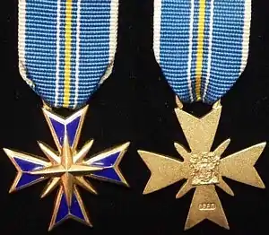 The Star of South Africa, Officer (post-nominal letters OSSA) is the fourth-ranked decoration of five non-military classes of the Order of the Star of South Africa, a South African military order that was instituted by the Republic on 1 July 1975. The Order of the Star of South Africa was discontinued in 2002.[1][2][3]