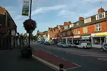 The High Street shops include a chemist, post office, butchers' outlets, general stores, motorcycle shop, veterinary practice, numerous fast food take-aways and a chimney sweep who sells wood-burning stoves.[6] There is only one public house, after the British Heritage Society-listed Henry Peacock Pub, named after the master of the local workhouse,[10] due to be demolished in 2016, was turned into a terrace of apartments with retail stores on the ground floor.[11]