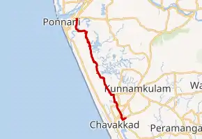 Guruvayoor – Althara – Perumpadappu – Maranchery – Kanjiramukku – Kundukadavu (joins Palakkad – Ponnani road)