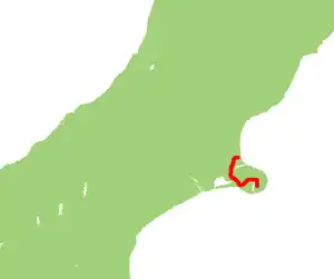 Now known as Tai Tapu Road, the road skirts the outer edges of Banks Peninsula while passing through arable farmland to reach the settlement of Tai Tapu. The road then changes name to Christchurch Akaroa Highway while continuing to skirt between Lake Ellesmere and the hills until Birdling's Flat, where it turns sharply into the hills of Banks Peninsula while hugging the shore of Lake Forsyth. The road proceeds through Western Valley to Little River and Cooptown.
