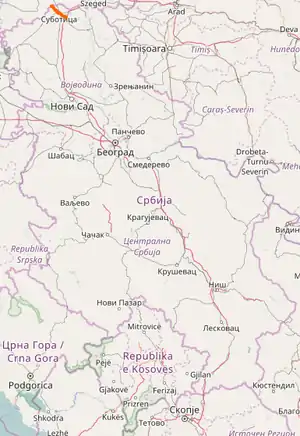 | 01199 | 4.023 km (2.500 mi) | 15.157 km (9.418 mi) | Subotica (Sombor road) – Subotica (Sombor) |