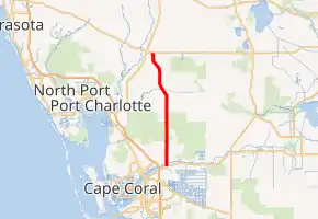 State Road 31 (SR 31) is a state highway in Southwest Florida in Lee, Charlotte, and DeSoto counties. It is about 36 miles (58 kilometers) long. The entire roadway is two lanes wide, even near Fort Myers. The highway crosses the Caloosahatchee River via the Wilson Pigott Bridge, a small drawbridge, a mile north of the southern terminus. The northern terminus is with an intersection of SR 70 near Arcadia. The southern terminus is with an intersection of SR 80 near Fort Myers Shores. The route is home to G. Pierce Wood Memorial Hospital, replacing the old De Soto Aircraft Field.