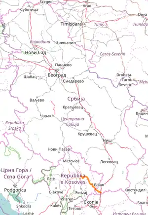 | 04203 | 16.332 km (10.148 mi) | 36.540 km (22.705 mi) | Kosovo and Metohija border (Depče) - Gnjilane (Dobrčane) |