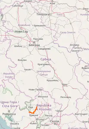 | 04504 | 12.817 km (7.964 mi) | 45.774 km (28.443 mi) | Gjakova (Ćafa Prušit) - Ponoševac |