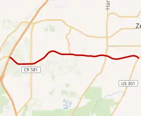 State Road 56 (SR 56) is a six lane state highway 6.732 miles (10.834 km) in length that runs from State Road 54 east to US 301 in Zephyrhills.