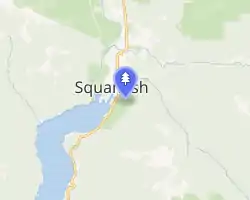 It is located to the south of the town of Squamish, on the Sea to Sky Highway at the top NE corner of Howe Sound.