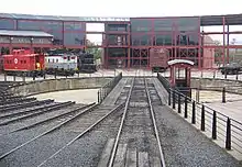Steamtown National Historic Site (NHS) is a railroad museum and heritage railroad located on 62.48 acres (25.3 ha)[2] in downtown Scranton, Pennsylvania, at the site of the former Scranton yards of the Delaware, Lackawanna and Western Railroad (DL&W). The museum is built around a working turntable and a roundhouse that are largely replications of the original DL&W facilities; the roundhouse, for example, was reconstructed from remnants of a 1932 structure. The site also features several original outbuildings dated between 1899 and 1902. All the buildings on the site are listed with the National Register of Historic Places as part of the Delaware, Lackawanna and Western Railroad Yard-Dickson Manufacturing Co. Site.[3][4]