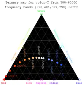 | Class | Effective temperature[1][2] | Vega-relative chromaticity[3][4][lower-alpha 1] | Chromaticity (D65)[5][6][3][lower-alpha 2] | Main-sequence mass[1][7] (solar masses) |