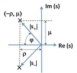 which shows for large enough values of βA0 the square root becomes the square root of a negative number, that is the square root becomes imaginary, and the pole positions are complex conjugate numbers, either s+ or s−; see Figure 2: