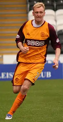 Stephen David Hughes[4] (born 14 November 1982) is a Scottish former professional footballer. Hughes played as a midfielder for Rangers, Leicester City, Motherwell, Norwich City, Milton Keynes Dons, Aberdeen, Dundee and East Fife. Hughes made one appearance for Scotland, playing in the last 20 minutes of a friendly match against Japan in 2009.