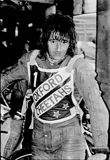 Harry Bastable brought him to Oxford Cheetahs in their first year of National League in 1976,[1] the Rebels having moved to White City with Danny Dunton. Steve became a crowd favourite, not just by riding but by living locally and getting involved off-track, such as dee-jaying at the Supporters Club, and, in Easter 1976, taking chocolate eggs to the children's ward of the John Radcliffe Hospital. With Cliff Anderson, he worked on track maintenance, looking after safety features such as boarding up the wire fencing, which had to be put up and taken down at every meeting so as not to obscure the view of the greyhound track on their race nights.[2]