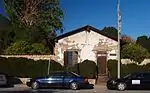 This adobe, California's First Theater, was built by English seaman Jack Swan in 1846-47 as a lodging house and tavern for sailors. He built the wood portion of the building in about 1845. He added the adobe portion in 1847, as the actual theater. It was used as a theatre in 1850 when U.S. Army officers stationed in Monterey, i.e., Lt. Alfred Sully, and others, produced plays under the direction of Actor/Manager Charles Bingham, and named it "The Union Theatre for the production of Melodramas". Swan built a small stage and provided benches, whale-oil lamps, candles for footlights and blankets as curtains. In later years, the First Theatre was used as a lodging house for whalers, but fell into disrepair after Swan's death in 1896. It was purchased in 1906 by California Historic Landmarks League and donated to the State of California. In 1937 and until recently, the Troupers of the Gold Coast staged the first melodramas since the 1850s. Because of structural issues, the building is closed to the public except for the Christmas in the Adobes event in December.[15] This building is a California Historical Landmark (#136).[16]