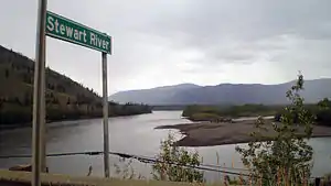 The Stewart River (Hän: Nä`chòo ndek) is a 533-kilometre (331 mi) tributary of Yukon River in the Yukon Territory of Canada.[2] It originates in the Selwyn Mountains, which stand on the border between the Northwest Territories and the Yukon Territory. From there, the Stewart flows west, past the village of Mayo. The river is crossed by the Klondike Highway at the village of Stewart Crossing, and the highway parallels the river westward for about 56 kilometres (35 mi). After leaving the highway, the river travels southwest until it intersects the Yukon River 112 kilometres (70 mi) south of Dawson City. The mostly abandoned village of Stewart River is located at the mouth of the river.