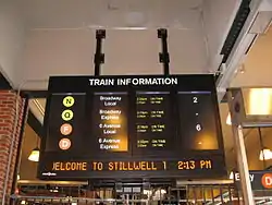 In May 2010, the station received four new electronic 32-inch (81 cm) train departure boards for each platform. These boards are controlled by dispatchers, based on the departure times posted on subway timetables.[41]