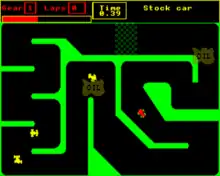 Stock Car is an overhead-view racing video game written by A. W. Halse and published in the UK by Micro Power.[1][2] It was released in 1984 for the BBC Micro, Acorn Electron, and Commodore 64 computers.[1][2][3] Although the cassette inlay gives the release date as 1984, some sources state the release date as 1983, and the game is also known as Stock Car Racer.[4][5]