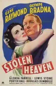 Stolen Heaven is a 1938 American drama film directed by Andrew L. Stone and written by Eve Greene, Frederick J. Jackson and Stone. The film stars Gene Raymond, Olympe Bradna and Glenda Farrell. The film was released on May 13, 1938 by Paramount Pictures.[1][2] The screenplay concerns two jewel thieves who pose as musicians to elude pursuing law officers.