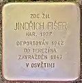 HERE LIVED JINDŘICH FIŠER BORN 1927 DEPORTED 1942 TO THERESIENSTADT MURDERED 6.9.1943 IN AUSCHWITZ |