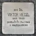 HERE LIVED VIKTOR METZL BORN 1903 MURDERED 7.4.1945 IN MAUTHAUSEN |