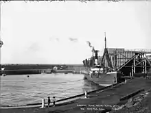 An artificial harbour was constructed in the 1880s,[18] with one breakwater running for 100 yards In a north-easterly direction and another to the south-east for 50 yards—from Cowrie Island—providing an entrance only 100 feet wide, with a depth of six feet of water.[15] The breakwater was extended westward around 1899,[19] to block completely the gap between Cowrie Island and the mainland.
