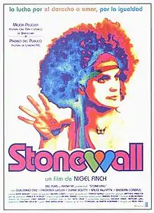 Stonewall is a 1995 British-American historical comedy-drama film directed by Nigel Finch, his final film before his AIDS-related death shortly after filming ended. Inspired by the memoir of the same title by gay historian Martin Duberman, Stonewall is a fictionalized account of the weeks leading up to the Stonewall riots, a seminal event in the modern American gay rights movement. The film stars Guillermo Díaz, Frederick Weller, Brendan Corbalis, and Duane Boutte.