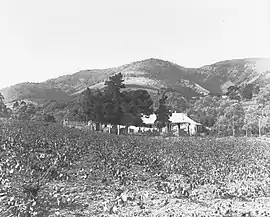In 1858, Henry Septimus Clark purchased land near the quarry from Edlin[6] in order to establish a vineyard. His fiancée, Annie Montgomery Martin, dubbed the land "Stonyfell"[7][8][9] (a "fell" being a term used for barren or uncultivated high ground in Northern England). Clark started planting the original vineyard with assistance from Robert Slape.[7][9] He built the two-storey wine cellars in the side of the hill, from locally quarried stone. By 1862, 25 acres (10 ha) had been planted with vines, mostly of the Black Portugal variety.[7] Joseph Crompton assisted in the vineyard, and in 1862 established a partnership with Clark and his brother A. Sidney Clark to conduct the business of winemakers, trading as Clark and Crompton. The company offices were in the same building as Francis Clark and Sons, with a warehouse in Blyth Street, Adelaide. On Henry's death, Sidney inherited his share of the business, which he sold to Crompton in 1873, though the business name remained "Clark and Crompton" until 1880.[10][11] Crompton took over the Home Park Winery at Magill, at which time Henry Tyler was the winemaker.[12]