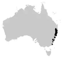 This frog's historical distribution ranged from the Timbarra River near Drake in northern New South Wales, to the Cann River catchment in eastern Victoria and covered an area of approximately 110 000 km². Populations south of Sydney have declined dramatically and the Victorian populations are believed to be extinct. It has also disappeared from a number of sites in NSW where it was once common. It occurs at altitudes between 20 m and 1400 m. In the north of its range the species occurs only at high altitudes while in the south both upland and lowland populations have been recorded.