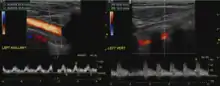Subclavian steal syndrome (SSS), also called subclavian steal steno-occlusive disease, is a constellation of signs and symptoms that arise from retrograde (reversed) blood flow in the vertebral artery or the internal thoracic artery, due to a proximal stenosis (narrowing) and/or occlusion of the subclavian artery. This flow reversal is called the subclavian steal or subclavian steal phenomenon, regardless of signs/symptoms being present.[1] The arm may be supplied by blood flowing in a retrograde direction down the vertebral artery at the expense of the vertebrobasilar circulation. It is more severe than typical vertebrobasilar insufficiency.