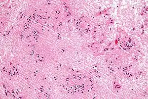 | Micrograph of a subependymoma showing the characteristic clustering of nuclei. H&E stain. | |