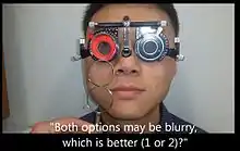 - The patient is shown the lens in both flip positions. Both options may be blurry, the patient is asked to indicate which is clearer of the two.[6]