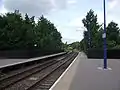 Signage on eastbound platform, indicating proximity to Sudbury Hill Underground station