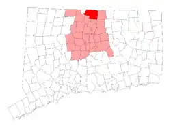 Suffield is a town in Hartford County, Connecticut, United States. It was once within the boundaries of Massachusetts. The town is located in the Connecticut River Valley with the town of Enfield neighboring to the east. As of the 2020 census, the population was 15,752.[2] The town center is a census-designated place listed as Suffield Depot in U.S. Census records.