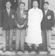 ![]() Sohn Kee-chung, Suh Yun-bok, Kim Koo and Nam Sung-yong at Gyeonggyojang in 1947 | |