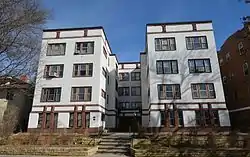 The Summit Apartment Building, also known as the Summit Street Cooperative Apartments, is a historic building located in Iowa City, Iowa, United States. This is the only known Iowa work of Chicago architect Parker Nobel Berry, a student of, and chief designer for, Louis Sullivan.[2] The building is a stripped-down version of his original plan, which proved too expensive to build. The three-story structure follows a U-shaped plan, and is built on a raised basement. Completed in 1916, it was Iowa City's first apartment flat.[2] The Prairie School-style building was built by local developer, Dr. Frank C. Titzell, who continued to own it until his death in 1932. His wife Bertha owned it until 1939 when she sold it to an out-of-state buyer. In 1947 it became the first Housing cooperative in the state after the Iowa General Assembly passed the Cooperative Housing Authorization Act earlier in the same year.[2] The building was listed on the National Register of Historic Places in 1983.[1]