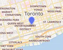 Located at the corner of King Street West and University Avenue, the taller East Tower is in the Financial District while the slightly shorter West Tower is located in the area known as the Entertainment District.