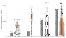 A super heavy-lift launch vehicle (SHLLV) is a launch vehicle capable of lifting more than 50 tonnes (110,000 lb) (by NASA classification) or 100 tonnes (220,000 lb)[1] (by Soviet/Russian classification) of payload into low Earth orbit (LEO),[2][3] more than a heavy-lift launch vehicle.