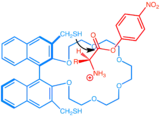 The term supramolecular chemistry is defined by Jean-Marie Lehn as "the chemistry of intermolecular bond, covering structures and functions of the entities formed by association of two or more chemical species" in his Nobel lecture in 1987,[6] but the concept of supramolecular catalysis was started way earlier in 1946 by Linus Pauling when he founded the theory of enzymatic catalysis in which rate acceleration is the result of non-covalent stabilization of the transition state by the enzymes.[7] Nevertheless, it was not until a few decades later that an artificial enzyme was developed. The first simple enzyme mimics were based on crown ether and cryptand.[8] In 1976, less than ten years after the discovery of crown ether, Cram et al. developed a functionalized binapthyl crown ether that catalyze transacylation.[4] The catalyst makes use the crown ether motif's ability to capture cation to bind to the ammonium ion part of the substrate and subsequently employs the nearby thiol motif to cleave the ester.