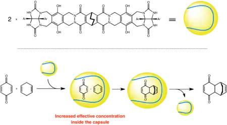 - Rebek, J. Jr; Kang, J. (1997). "Acceleration of a Diels–Alder Reaction by a Self-Assembled Molecular Capsule". Nature. 385 (661): 50–52. Bibcode:1997Natur.385...50K. doi:10.1038/385050a0. PMID 8985245. S2CID 4361080.