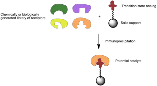 Assuming that catalytic activity largely depends on the catalyst's affinity to the transition state, one could synthesize a transition state analog (TSA), a structure that resembles the transition state of the reaction. Then one could link the TSA to a solid-support or identifiable tag and use that TSA to select an optimal catalyst from a mixture of many different potential catalysts generated chemically or biologically by a diversity oriented synthesis. This method allows quick screening of a library of diverse compounds. It does not require as much synthetic effort and it allows a study of various catalytic factors simultaneously. Hence the method could potentially yield an efficient catalyst that we could not have designed with our current knowledge.[20]