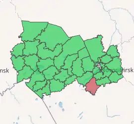 Suzunsky District (Russian: Сузу́нский райо́н) is an administrative[1] and municipal[5] district (raion), one of the thirty in Novosibirsk Oblast, Russia. It is located in the southeast of the oblast. The area of the district is 4,746 square kilometers (1,832 sq mi). Its administrative center is the urban locality (a work settlement) of Suzun.[1] Population: 32,592 (2010 Census);[2] 34,917 (2002 Census);[7] 35,677 (1989 Census).[8] The population of Suzun accounts for 47.1% of the district's total population.[2]