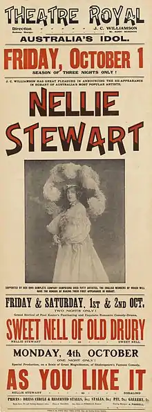 ![]() Poster from 1909 production of play with Nellie Stewart | |