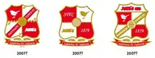 Swindon Town have used at least five different kit badges since their inception.[60] The original badge depicted a robin inside a shield with the letters STFC in the four corners, this changed to the "Steam Train" badge which was a coat of arms for the club based heavily on the coat of arms used by the local council.[61] The "Steam Train" badge was in the form of a traditional shield, bisected with the club's name, a GWR steam locomotive (as Swindon is a railway town), a football and with a robin sitting on top. Beneath the shield was a motto on a scroll – "Salubritas et Industria" – meaning "health and industry".[61] This motto is also that of the town of Swindon itself.[62]