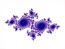 A more subtle form of scale symmetry is demonstrated by fractals. As conceived by Benoît Mandelbrot, fractals are a mathematical concept in which the structure of a complex form looks similar at any degree of magnification,[34] well seen in the Mandelbrot set. A coast is an example of a naturally occurring fractal, since it retains similar-appearing complexity at every level from the view of a satellite to a microscopic examination of how the water laps up against individual grains of sand. The branching of trees, which enables small twigs to stand in for full trees in dioramas, is another example.