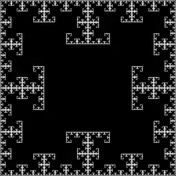 The method of creation is rather similar to the ones used to create a Koch snowflake or a Sierpinski triangle, "both based on recursively drawing equilateral triangles and the Sierpinski carpet."[1]