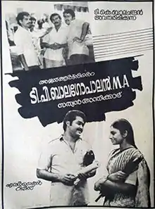 T. P. Balagopalan M. A. is a 1986 Indian Malayalam-language comedy-drama film directed by Sathyan Anthikkad and written by Sreenivasan from a story by Anthikkad. Starring Mohanlal in the title role, along with Shobana, Balan K. Nair, Kuthiravattam Pappu, Maniyanpilla Raju, Sreenivasan, Sukumari, and K. P. A. C. Lalitha.[1][2] The story follows T. P. Balagopalan, who struggles to make ends meet and his romantic life with Anitha.