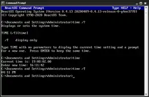 When this command is called from the command line or a batch script, it will display the time and wait for the user to type a new time and press RETURN. Pressing RETURN without entering a new time will keep the current system time. The parameter '/T' will bypass asking the user to reset the time. The '/T' parameter is supported in Windows Vista and later and only if Command Extensions are enabled.[4]