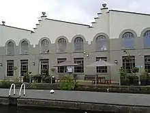 In 2011, MTV Networks applied for permission to make changes to the building, primarily to remove some of the studios – which were in decreasing demand following changes in MTV's scheduling and commissioning practices – and replace these with modern office space.[49] The rear of the building, facing Regent's Canal, was repainted grey rather than blue, but the structure – and the iconic eggcups – remained in place. The front of the building was more extensively redeveloped during 2012–2013: the studio block, which had been the site of the original TV-am studios, was demolished and replaced with a new glazed-fronted office complex. The front 'courtyard' between the prior studio and office sections was renovated and reorganised, including the installation of a green wall. The office suite on the other side of the courtyard remained in place but was renovated, including the removal of the obscured-since-1993 'TVAM' lettering from the building fascia.[50][51][52][53] MTV Networks continued to operate from the building during the rebuilding and renovation works, and following the construction of the expanded office space was able to move Comedy Central UK and Nickelodeon UK from their prior Central London office complexes to Hawley Crescent.