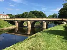 Tadcaster Bridge or Wharfe Bridge spans the River Wharfe in Tadcaster, North Yorkshire, England. The road bridge is believed to date from around 1700. It is the main route connecting the two sides of the town and one of two road crossings in the town, the other being the bridge for the A64 bypass. Tadcaster Bridge partially collapsed on 29 December 2015 after flooding that followed Storm Eva, and reopened on 3 February 2017.[1][2][3]